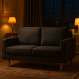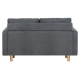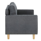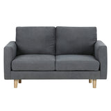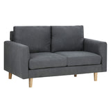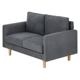 Features Type: Love Seat Comfort Level: Soft to Medium Shape: Standard Sofa Frame Material: Solid Wood; Manufactured WoodFrame Material Details: Eucalyptus wood, pine wood Legs Material: Solid WoodLegs Material Details: Eucalyptus wood, pine wood Upholstery Material: FabricUpholstery Material Details: 100% polyester Seat Padding Material: High-density foam Back Padding Material: High-density foam Seat Suspension Type: SpringsSuspension Details: S-springs Armless: No Seat Cushion(s) Removable: Yes Back Cushion(s) Removable: Yes Seating Capacity: 2 Foot Pads Included: No Additional Floor Protectors Advised for Wooden Floors: Yes Back Type: Cushion Back Style: MidCentury; Scandinavian Pattern: Solid Box Contents: 1 x sofa, 1 x set of assembly parts, 1 x assembly manual Care Instructions: Vacuum & dust regularly; wipe contact areas regularly with a clean, soft cloth; avoid rubbing or scrubbing; treat all liquid or food spills immediately Assembly Assembly Required: Yes  Limited warranty Product Warranty: 2 Years  StyleThe Vanessa 2 Seater Sofa is a MidCentury or Scandinavian style product. Scandinavian style is exemplified by clean-lines, simple, and functional. Scandinavian interiors feature bright white on floors, fabrics, and walls.While, unpainted, light wood furniture that embraces the natural grain adds much-needed warmth to spaces. Sleek, utilitarian furniture without much embellishmentis a mainstay in this minimalist style with a modern flair. You can shop for more MidCentury or Scandinavian Sofas & Lounge Sets in the Furniture section of our site.