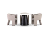 THANOS 5 PIECE CERAMIC DINING SUITE WITH ALICANTE DINING CHAIRS. MARBLE/BEIGE