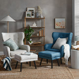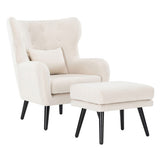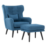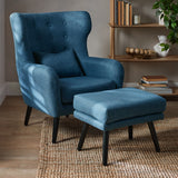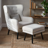 Features: Materials: eucalyptus plywood frame, rubberwood legs, 100% polyester upholstery, foam padding Includes: 1 x armchair, 1 x footstool, 1 x lumbar cushion, 2 x set of assembly parts, 1 x assembly manual Inspired by mid-century design Higher backrest offers great support Button tufting & elegant wingback design gives it classic style Includes a lumbar cushion for additional comfort & extra support Eucalyptus plywood frame & solid rubberwood legs give it strength & durability 100% polyester upholstery is easy to clean & maintain Foot pads are included underneath each leg for stability & protection Footstool weight capacity: 85kg Footstool dimensions: H42 x W56 x D55cm Seat back height: 55cm Product Details: Recommended Weight Capacity: 120 Kilograms