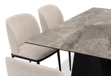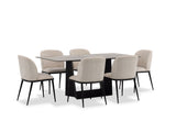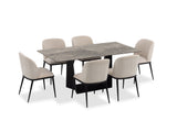 MILAS 7 PIECE DINING SUITE WITH CEDRIC DINING CHAIRS. CREAM/GREY