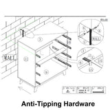 Features: Material: laminated MDF Drawers comes with metal runners Anti-tipping hardware included for safety Item is flat packed for home assembly Minimal assembly required WARNING Children have died from furniture toppling over Always secure this furniture with an anchor deviceNever allow children to stand, climb or hang on drawers, doors, or shelvesNever open more than one drawer at a timePlace heavy items down lowNever place a television on this furniture