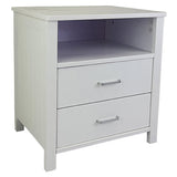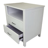 Features: Materials: MDF Includes: 1 x bedside table 2 x drawers with 1 x open shelf White painted finish Drawers come with aluminium handles & extension runners External drawer dimension: 15.5 x 45 x 37cm Item arrives flat pack