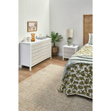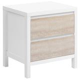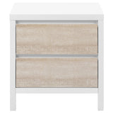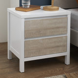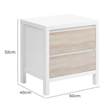 Features: Materials: MDF with white lacquering frame & tabletop, metal runners Includes: 1 x bedside table, 1 x assembly parts, 1 x manual 3D printed drawer face in a whitewash finish inspires a coastal look 2 x drawers on metal runners provide easy & smooth access to plenty of storage space within Anti-topple anchors included for your peace of mind White lacquered frame is a refreshing complement to the timber look of the drawers It's easy to clean with a quick wipe down You can also style it in the children's bedroom Save time with its easy assembly Check out our bedside table buying guide for help choosing a style that's right for you and your home We've tested it for you - the surface is resistant to liquids & staining, just be sure to wipe up spills as soon as possible