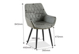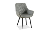 Meet the Dorella Dining Chair in Grey - a sleek and sophisticated upgrade for your dining area. The soft, low-maintenance upholstery is accented with stylish quilted stitching, giving your space a refined, contemporary edge. Supported by black powder-coated metal legs, this set pairs beautifully with both glass and timber tables. Whether you're enjoying quick breakfasts or slow, indulgent dinners, these chairs keep comfort in focus. Ideal for modern, minimalist, or neutral interiors. Comes in a set of 2. Recommended weight limit: 120kg.