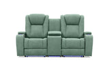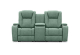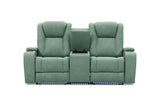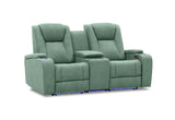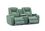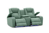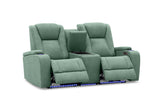 Covered in soft buckskin fabric, the Sentinal fabric 2 seater is incredibly comfortable. Home theatre features include light-up cup holders, a blue LED non-trip light strip, storage compartments, and a dual-motor mechanism.