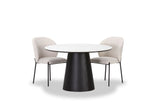 The Thanos 5 Piece Ceramic Dining Suite with Fidel Dining Chairs is perfect for those seeking a blend of modern sophistication, comfort, and unique design, making it an excellent addition to any dining area.