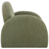 Features: Materials: plywood frame and legs, high-density foam padding, 100% polyester chenille upholstery Includes: 1 x armchair, 1 x assembly manual A beautiful oversized armchair with a statement-making rounded silhouette adds a bold and contemporary look to your space Upholstered in premium chenille fabric, offering a soft, plush texture that is both beautiful and highly durable for long-term enjoyment The arched legs seamlessly integrate with the arms and base, creating a single, continuous silhouette for a sleek, modern sculptural appearance The seat and back padding are filled with high-density foam to ensure a supportive yet comfortable soft-medium feel for relaxing Easy assembly Product Details: Recommended Weight Capacity: 120 Kilograms
