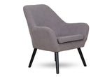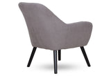 With its classic shape and sleek grey upholstery, it offers a blend of comfort and timeless design. The black contrast rubberwood legs provide durability and add a modern touch to its traditional silhouette.