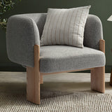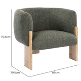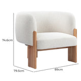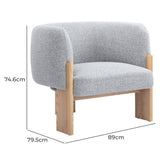 Features: Materials: pine wood, plywood & oak wood frame, ash wood legs, 100% polyester upholstery, elastic foam padding Includes: 1 x armchair Showcases chunky legs for a modern look Has a soft to medium seat firmness, ensuring a comfortable seat all day long Deep & curved backrest for comfort & style The good clearance between the seat & floor gives the illusion of space in smaller areas A statement piece suitable for any home setting Note: throw cushion not included Product Details: Recommended Weight Capacity: 120 Kilograms