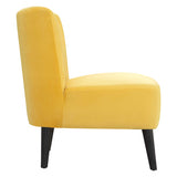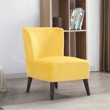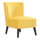 Features: Materials: velvet fabric, pine wood legs, MDF frame, medium density foam, fibre fill Includes: 1 x accent chair with self tapping screws Product Details: Recommended Weight Capacity: 120 Kilograms