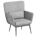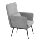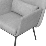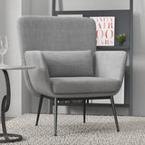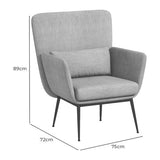 Features: Materials: 100% polyester, pine wood, iron, high-density foam Includes: 1 x accent chair, 1 x lumbar cushion Brings a sleek modern look to your space High-density foam seat High-back support Easy assembly Product Details: Recommended Weight Capacity: 150 Kilograms