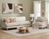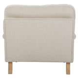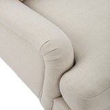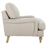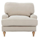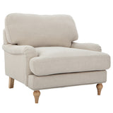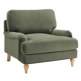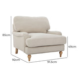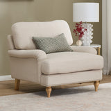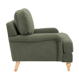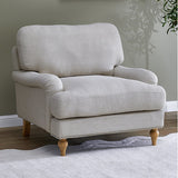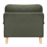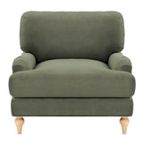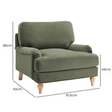 Features: Materials: plywood & laminated veneer lumber frame, rubberwood with natural lacquer finish legs, high-density polyester foam seat & back padding, polypropylene webbing, 100% polyester upholstery (Natural); polyester velvet upholstery (Olive Green) Includes: 1 x armchair, 1 x assembly manual A contemporary take on a traditional rolled-arm sofa Modern curved detailing on the legs & arms takes you from the seaside to the country High-density polyester foam cushions offer an exceptional level of comfort & support Sink-in comfort Product Details: Recommended Weight Capacity: 120 Kilograms