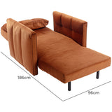 Features: Materials: steel frame & legs, 100% polyester velvet upholstery, high-density foam padding, plastic foot pads Includes: 1 x sofa bed, 1 x assembly manual The click-clack mechanism offers multiple reclining options for the backrest Generously-sized armchair that effortlessly converts into a single-sized bed The extending base offers a relaxing lounge experience Luxurious velvet fabric is accentuated by broad channel tufting The high-density foam has excellent compressive stress resistance