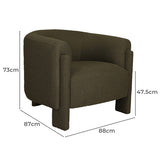 Features: Materials: American oak wood frame & legs, 100% polyester upholstery, high-density foam padding Includes: 1 x tub chair Crafted from enduring American oak wood Sumptuous comfort with carefully selected fabric upholstery Solid frame exudes strength & sophistication Showcases distinctive grain patterns & warm tones A testament to craftsmanship & comfort Enhances the aesthetic & ambience of any space Product Details: Recommended Weight Capacity: 136 Kilograms