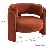 Add impact to your interior with this eye-catching armchair, a cosy design with beautifully soft fabric upholstery and generous padding. The hugging backrest feels inviting, making it an effective addition to a lounge or to a space that needs a more homely touch. Complete your set up by styling a textural rug beneath it, with a convenient side table nearby, and a lamp with warm lighting; just add wine/book/film and settle in.