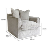 Features: Materials: corduroy fabric upholstery (90% polyester & 10% nylon), pine wood & plywood frame, birch wood legs, 50% duck feather, 30% polyester & 20% smashed foam padding & cushion fill Includes: 1 x armchair, 2 x throw cushions, 1 x set of assembly parts, 1 x assembly manual Ideal lounge piece for any living room Its slipcover allows easy care & cleaning Its well-padded upholstery ensures a cosy seat at all hours of the day Note: images are taken in a studio environment, please allow for colour variations depending on your monitor settings & the lighting environment in your home Note: designed for the Cumulus couch frame only, not for any other couch. Product Details: Recommended Weight Capacity: 150 Kilograms