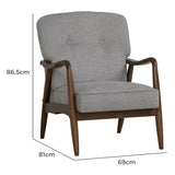Features: Materials: Malaysian oak wood frame & legs, 100% polyester upholstery, high-density foam padding Includes: 1 x armchair, 1 x assembly manual Ergonomic design with an eye-catching appearance, making it a standout piece in any room 24kg density foam fill Commercial & residential use Product Details: Recommended Weight Capacity: 130 Kilograms