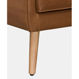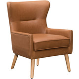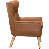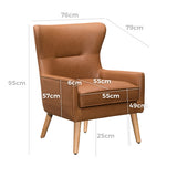 Features: Materials: plywood frame, rubberwood legs, PU leather upholstery, high-density foam padding Includes: 1 x armchair Natural finish legs Minimal assembly required Product Details: Recommended Weight Capacity: 120 Kilograms