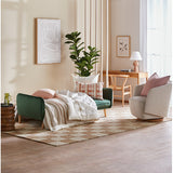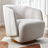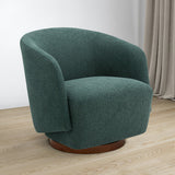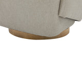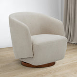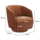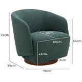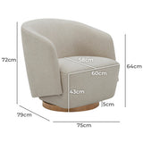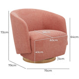Features: Materials: pine & plywood frame, red oak legs, 100% polyester fabric, foam, fibre Includes: 1 x armchair Durable fabric proven tough on daily wear Beautifully textured & chunky fabric that exudes modern vibes Wooden swivel base allows chair to turn in any direction Generous in scale Product Details: Recommended Weight Capacity: 115 Kilograms