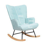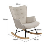 Features: Materials: steel frame, rubberwood rocking base, polyester upholstery, high-density foam padding, felt foot pads Includes: 1 x rocking chair, 1 x set of assembly parts, 1 x assembly manual Anti-slip floor protectors Easy to assemble Smooth fabric Recommended to be used on carpet Product Details: Recommended Weight Capacity: 95 Kilograms