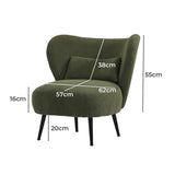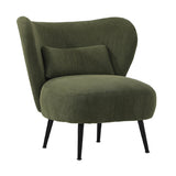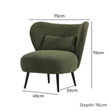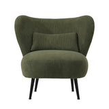Features: Materials: plywood frame, powder-coated iron legs, 100% polyester corduroy velvet upholstery, high-density foam seat & back padding Includes: 1 x accent chair, 1 x lumbar cushion, 1 x assembly instructions Generous profile proportions including a wide, winged backrest & deep seat Enriched with full comfort all year round Keeps your whole body well supported, including a lumbar pillow for your back Rich, textured corduroy upholstery Durable & sturdy frame & splay, powder-coated metal legs for stability We recommend fluffing cushions daily to maintain their shape, to ensure longer life, & to create a fuller & more plump appearance Product Details: Recommended Weight Capacity: 150 Kilograms
