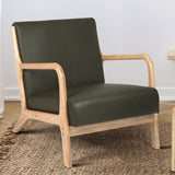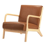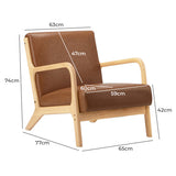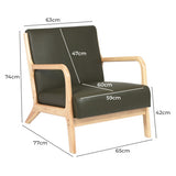 Features: Materials: rubberwood frame & legs, PU leather upholstery, high-density foam padding Includes: 1 x armchair Soft & plush seat Cushioned backrest Smooth rounded corners Clean, simple lines define this armchair Product Details: Recommended Weight Capacity: 150 Kilograms