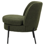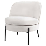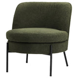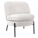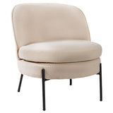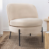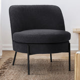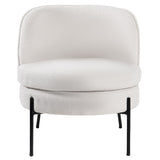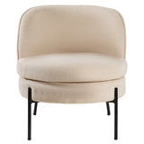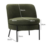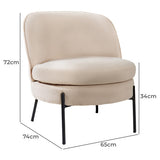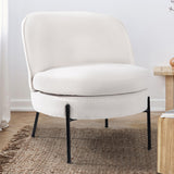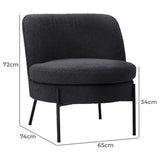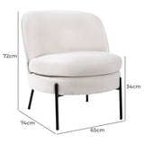 Features: Materials: powder-coated iron frame and legs, polyester sherpa upholstery, high-density foam seat and back padding Includes: 1 x accent chair, 1 x assembly manual Generous profile proportions incorporating a wide backrest and deep seat for full comfort Well-supported with high-density foam padding Construction-wise, the sturdy metal frame and black powder-coated metal legs will ensure that stability is never compromised Smooth round corners Product Details: Recommended Weight Capacity: 150 Kilograms