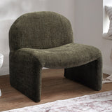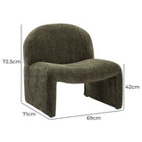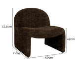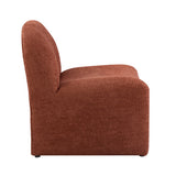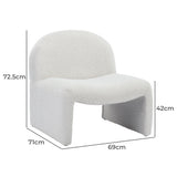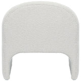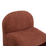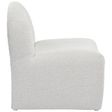Features: Materials: plywood frame, rubberwood legs, 100% polyester bouclé upholstery, high-density foam padding Includes: 1 x accent chair Upholstered in fine bouclé textured fabric Generously wide armless accent chair with a minimalist yet sophisticated curved design Comes fully assembled for hassle free setup Soft to medium seat comfort, the ideal choice for relaxation Product Details: Recommended Weight Capacity: 120 Kilograms