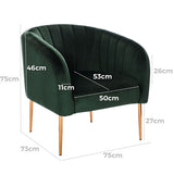 Features: Materials: plywood frame, velvet fabric upholstery, metal legs Includes: 1 x armchair Product Details: Recommended Weight Capacity: 120 Kilograms