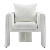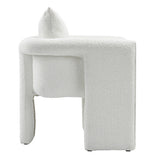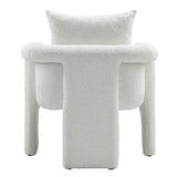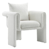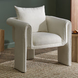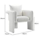 Features: Materials: plywood & pine wood frame, rubberwood legs, 100% polyester bouclé upholstery, foam & fibre seat padding, fibre back padding Includes: 1 x armchair Fully upholstered in textured polyester bouclé fabric for a soft finish Removable seat & back cushion for easy adjustment Showcases thre chunky legs for a modern look Product Details: Recommended Weight Capacity: 120 Kilograms