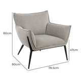 Features: Materials: plywood frame, iron legs, polyester fabric upholstery, high-density foam padding, hard plastic foot pads Includes: 1 x armchair, 1 x assembly manual Sturdy legs made from iron The contemporary slanted-style design makes it a statement piece Product Details: Recommended Weight Capacity: 120 Kilograms