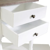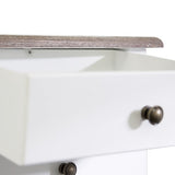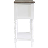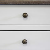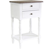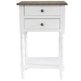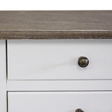 Features: Material: paulownia timber, MDF Distressed white with brown top finish Solid brass handles French provincial style 2 x drawers WARNING Children have died from furniture toppling over Always secure this furniture with an anchor deviceNever allow children to stand, climb or hang on drawers, doors, or shelvesShopping for a business? Join our Trade+Commercial Program today to access exclusive trade pricing.