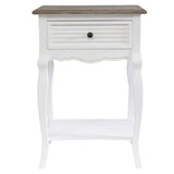 Features: Material: paulownia timber, MDF Distressed white with brown top finish Solid brass handle French provincial style 1 x drawer WARNING Children have died from furniture toppling over Always secure this furniture with an anchor deviceNever allow children to stand, climb or hang on drawers, doors, or shelvesShopping for a business? Join our Trade+Commercial Program today to access exclusive trade pricing.