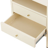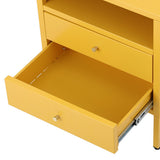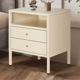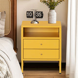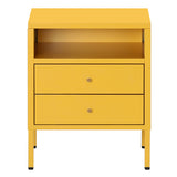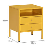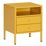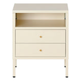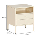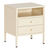 Features: Materials: cold-rolled powder-coated steel frame, drawers, and legs, hard plastic foot pads, brass handle, steel drawer runners Includes: 1 x bedside table, 1 x assembly manual, 1 x set of assembly parts A stylish and gentle to complete your bedroom ensemble Provides convenient storage for all your bedtime essentials Perfectly complements modern and eclectic home décor Crafted from selected cold-rolled steel for excellent resistance to water, rust, corrosion, and heat Strong load-bearing ability for long-term use Adjustable feet and non-slip pads ensure stability on uneven floors and protect surfaces from scratches Two storage drawers and one open shelf for storing daily accessories, tableware, books, magazines, and decorations Versatile design can be used as a sideboard, self-service table, storage cabinet, or display cabinet