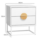 Features: Materials: particleboard with paper veneer finish frame & tabletop, steel legs, rubberwood handles Includes: 1 x bedside table, 1 x anti-tip kit 2 spacious drawers to hold bedside essentials Smooth-coated runners for fuss-free movement Easy to assemble