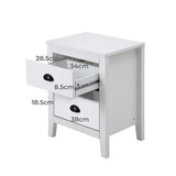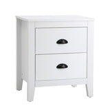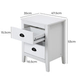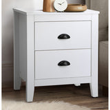 Features: Materials: particleboard frame & tabletop, steel drawer runners, aluminium alloy handles Includes: 1 x bedside table, 1 x assembly manual, 1 x anti-topple kit Functional & convenient, this desirable furniture will help complete one's stylish, bedside setup Displays a very practical & vintage-inspired design vibes with an immaculate white finish with interesting aesthetics Two drawers provides ample space Near flawless finish with meticulous attention to details Sturdy particleboard construction & quality, wooden components for total durability & longevity Easy cleaning & maintenance