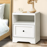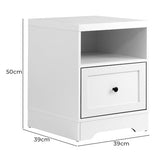 Features: Materials: particleboard with paper veneer finish, alloy handle Includes: 1 x bedside table, 1 x assembly manual Stylish design Open shelf storage Spacious drawer 1.5cm solid particleboard Smooth-coated runners Advanced wall locker Easy to maintain, clean & assemble