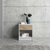 Features: Materials: engineered wood with 1.5cm PU laminate finish frame, tabletop, & drawer, PVC plastic handle Includes: 1 x bedside table, 1 x assembly manual Open shelf height: 35.2cm
