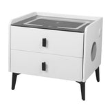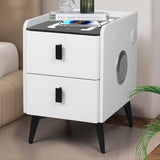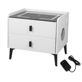 Features: Materials: MDF with PU leather side frame, steel handle & legs, tempered glass tabletop Includes: 1 x bedside table, 1 x assembly instructions, 1 x power adaptor Built with a wireless charging pad, two USB ports & one Type-C port Tri-colour lighting (bright white, natural, warm) with touch & long-press brightness controls Spacious drawers & open storage for bedside essentials Smart Bluetooth for music control with high-speed, stable connection (over 10 meters) Easy to assemble with labelled parts & detailed directions Low-maintenance & easy to clean Input: 220V-240V~50/60Hz 0.8A max Output: 12V 2.0A 24W