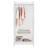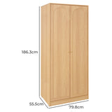 Features: Materials: particleboard and MDF frame and doors, plywood shelves, aluminium hanging rail and handles, polypropylene foot pads Includes: 1 x wardrobe, 1 x set of extra handles, 1 x set of assembly parts, 1 x anti-topple kit, 1 x assembly manual The arch-shaped design on the door panels complement a variety of interior styles, from contemporary to classic With two generously sized doors and ample interior space, the wardrobe provides a smart, organised storage solution for clothes, accessories, and other personal items, keeping your space tidy and clutter-free Designed for versatility, this wardrobe is ideal for both larger and smaller spaces, providing an efficient and stylish storage option while taking up minimal space Simple to clean and maintain, allowing you to enjoy a hassle-free storage solution Oak option comes with a set of gold and a set of black handles to suit your décors; White comes with a set of gold and a set of white Consider matching this wardrobe with other furniture pieces from the Gina collection for a more cohesive look  WARNING Children have died from furniture toppling over Always secure this furniture with an anchor deviceNever allow children to stand, climb or hang on drawers, doors, or shelvesNever open more than one drawer at a timePlace heavy items down lowNever place a television on this furniture