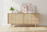 Product Code: 852280001 The Boyer Buffet in Oak is all about clean lines and clever storage. With a warm wood finish and minimalist design, it brings a fresh, modern feel to any dining or living space. Three drawers keep smaller items in check, while cabinet doors open up to roomy compartments for dinnerware, serveware, or board games. It’s the perfect piece to keep your space feeling calm, collected, and effortlessly stylish. Think of it as function wrapped in Scandinavian-inspired charm. Click here to view Furniture Safety Information Ready To Assemble This product comes ready to assemble. Assembly Instructions To download assembly instructions for this product click here WARNING! Children have died from furniture toppling over. Always secure this furniture with an anchor device. Never allow children to stand, climb or hang on drawers, doors, or shelves. Never open more than one drawer at a time. Always place heavy items down low. Never place a television on any furniture other than an entertainment unit. For entertainment units, always secure your television with an anchor device. For more information, visit Home | ACCC Product Safety or click here to view furniture safety information.