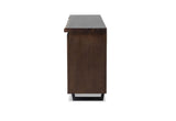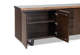 The Nero Buffet showcases natural beauty with its European white oak timber and exclusive made to order dark walnut finish. The black steel framework gives this buffet an industrial feel. It features three drawers with soft-close drawer runners and velvet lining, two large cupboards with soft-close hinges and a removable wine rack. The Nero Buffet comes ready to assemble and has a 15 year guarantee. Explore the rest of the range, including the option of the Buffet in a stunning Natural Walnut Finish.