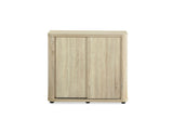 With two sliding doors and interior shelving, it provides ample storage space for dinnerware, linens, or other essentials.