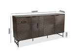 Product Code: 847600001 Turn heads and tame clutter with the Walls 4 Door Buffet. Its dramatic sunburst design steals the spotlight, while the four-door configuration hides generous interior shelving. Use it in the dining room to store serveware, or in the living room for extra style and storage. Finished in warm walnut with black metal legs and handles, this buffet adds bold energy to any room. Click here to view Furniture Safety Information Ready To Assemble This product comes ready to assemble. Assembly Instructions To download assembly instructions for this product click here WARNING! Children have died from furniture toppling over. Always secure this furniture with an anchor device. Never allow children to stand, climb or hang on drawers, doors, or shelves. Never open more than one drawer at a time. Always place heavy items down low. Never place a television on any furniture other than an entertainment unit. For entertainment units, always secure your television with an anchor device. For more information, visit Home | ACCC Product Safety or click here to view furniture safety information.