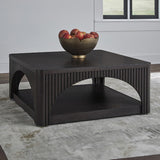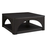Features: Materials: acacia wood & MDF with oak veneer finish Includes: 1 x coffee table This coffee table radiates style & sophistication with its dark French black finish Designed with unique arches & lattice details, it adds trendy elegance to your home décor