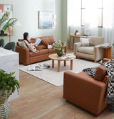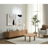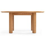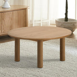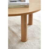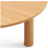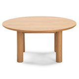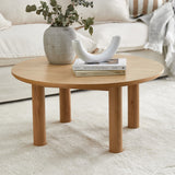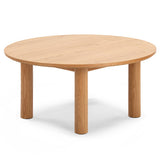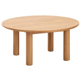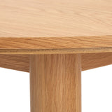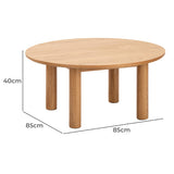 American oak wood is a beautiful timber to style in your home. Sustainably sourced, it is a strong and durable material. It's resistant to water, plus it's naturally very attractive. The round coffee table has thick cylindrical legs that provide a sturdy foundation. Style a book stack and top with a candle or decorative ceramic to add height and interest.