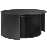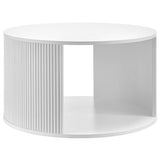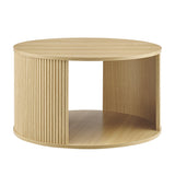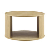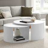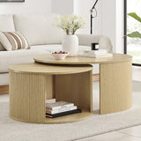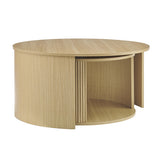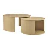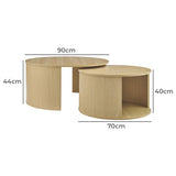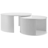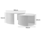 Features: Materials: MDF & particleboard with PVC laminate finish frame, particleboard with melamine finish tabletop Includes: 1 x large coffee table, 1 x small coffee table, 1 x assembly parts, 1 x assembly manual Adds style & practicality to living spaces The smaller table offers generous storage under & within The elegant silhouette & the reeded wood grain design offer a modern look Keeps your home organised while maintaining a clean & polished appearance