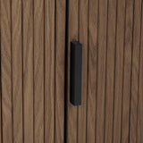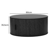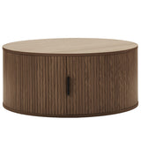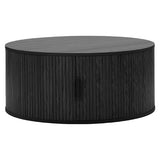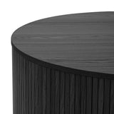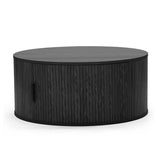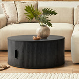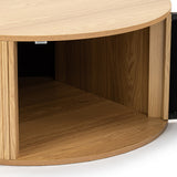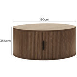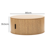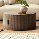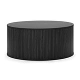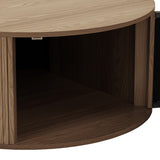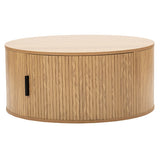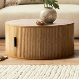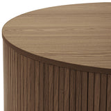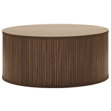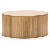 This pill-shaped coffee table combines sleek, rounded lines with bold, vertical detailing for a modern, sculptural look. Its laminated wood grain finish grounds the space, adding instant sophistication and a strong visual anchor to any living area. Add height and soften the look with a plant or flowers on top.