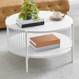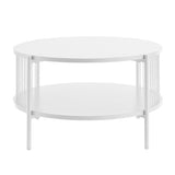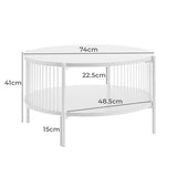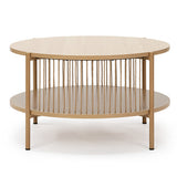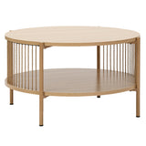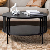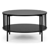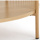 Features: Materials: MDF with melamine finish tabletop & shelf, powder-coated steel frame & legs, 0.3cm straw ropes Includes: 1 x coffee table, 1 x assembly manual Ideal for storing magazines or books Eye-catching design Stylish & easy to assemble Beautiful addition to any living space & will blend into any décor 0.3cm straw ropes Modern design Oak colour has a light natural tone with timber-look finish legs Black colour has a sleek & sophisticated black tone Open shelf dimensions: H22.5 x W71 x D71cm