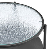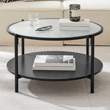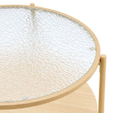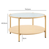 Features: Materials: powder-coated steel with woodgrain finish frame and legs, MDF with melamine finish lower shelf, tempered glass tabletop, steel hardware Includes: 1 x coffee table, 1 x set of hardware kit, 1 x assembly manual 0.5cm thick tempered glass top with a water wave pattern for a sleek and contemporary finish MDF shelf with a melamine finish for enhanced storage and durability Sturdy steel frame for long-lasting support Easy assembly with instructions included